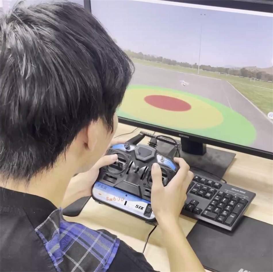 秦黎佩老師介紹到,室內(nèi)模擬飛行系統(tǒng)是理論教學(xué)與實(shí)踐操作的“橋梁”。系統(tǒng)通過高精度物理引擎,1:1還原真實(shí)飛行環(huán)境的氣流變化、無人機(jī)動(dòng)力響應(yīng)等細(xì)節(jié),幫助學(xué)生提前掌握遙控器操作邏輯、飛行軌跡規(guī)劃及突發(fā)故障應(yīng)急處理能力。“模擬調(diào)試不僅大幅降低了教學(xué)成本——避免了實(shí)機(jī)損耗與場地限制,更重要的是,它讓學(xué)生在‘試錯(cuò)’中建立起操作自信,為后續(xù)實(shí)飛奠定了扎實(shí)基礎(chǔ)。”。